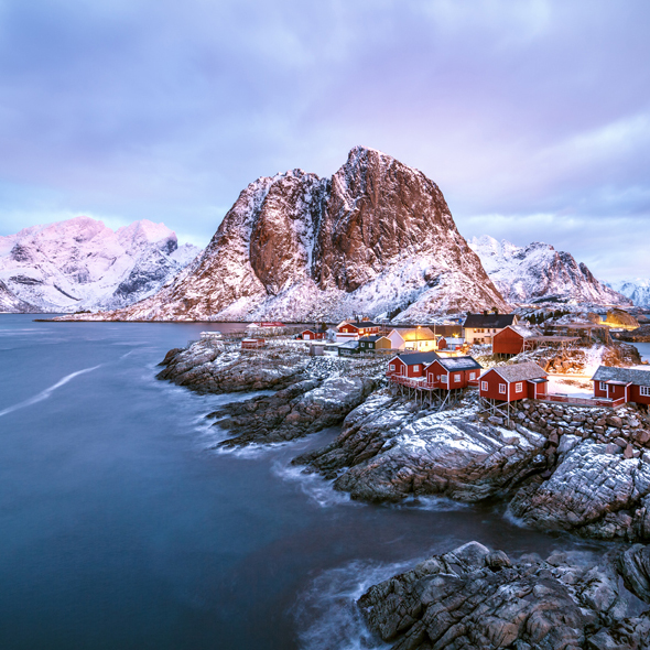 Nestled between the jagged range of Lofoten Islands is the tiny fishing hamlet of Gravdal with its wild, almost alpine grandeur. Fishing is still the main industry and many small villages with houses built on stilts over the water dot the landscape.
