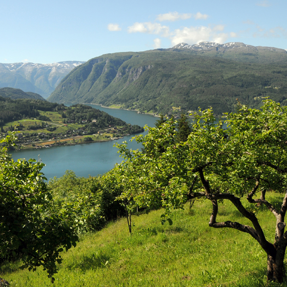 Located along the dramatic Aurlandfjord, the fruit growing region near Flam presents the incongruous sight of orchards and snow-capped peaks. Ride an electric railway into the mountains for breathtaking vistas.
