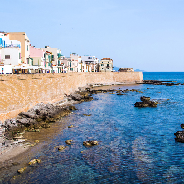 On Sardinia's west coast, the picturesque seaport of Alghero is surrounded by olive groves and vineyards. Sample local wine and wander the narrow streets to shop for handmade woolem goods and jewelry. Nearby is a magnificent coastline with isolated beaches.