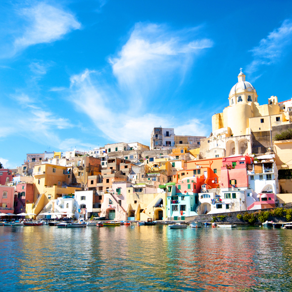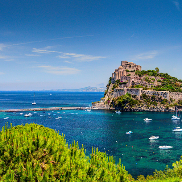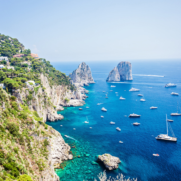 Popular since Roman times when the emperors built their villas on Capri, this island is surely one of the world's most famous and beautiful spots. Visiting Capri, it is easy to see why the ancient Romans fell in love with this place 2,000 years ago - the craggy mountains, the sea caves and grottos and the brilliantly colored flowers cast a magic spell then and still capture the admiration of today's travelers. There are sleek yachts moored in the deep blue waters of the bays, and beautiful villas and tiny villages cling to steep slopes. An excellent year-round climate and a breathtaking landscape complete the picture of a storybook island.