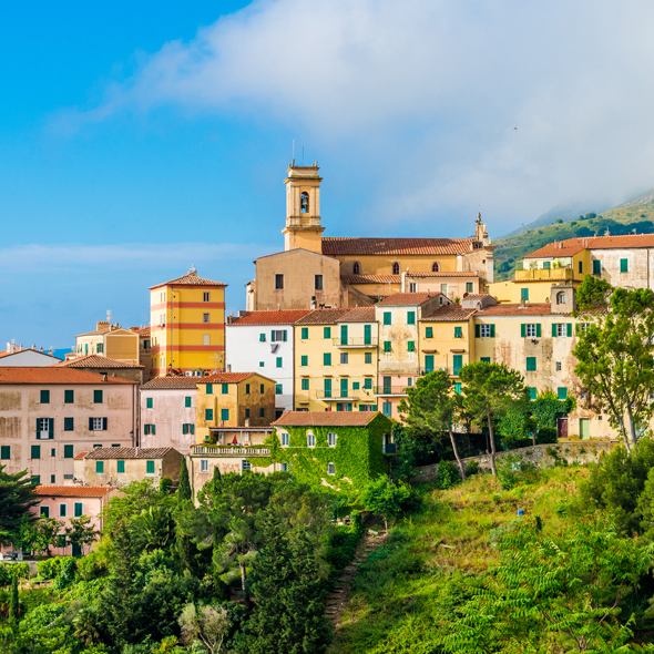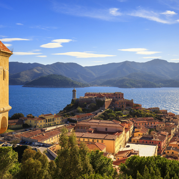 One of Italy´s most popular summer resorts, Elba was also Napoleon´s island of exile. The town of Portoferraio, which lies along the shore of the scenic bay, is dominated by the Medici Fortress and the Molini Castle. You may shop for Tuscan handicrafts ranging from straw hats to Florentine leather goods.