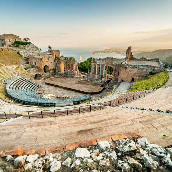 Scenically located in the shadows of the volcanic Mount Etna, Catania is surrounded by a region rich in citrus trees, eucalyptus forests and olive groves. Tour Via dei Crociferi, where the magnificent Roman Theatre has been reconstructed.