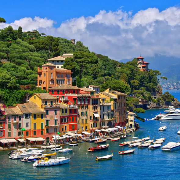 From Santa Margherita visit Portofino one of the most photographed - and most exclusive - harbours in the Mediterranean with its magic and the look of a film set. Yet this is very much the genuine article. Nestling below the pine, olive and eucalyptus trees that dress this Ligurian peninsula lies a fabulous collection of terracotta-coloured houses, topping a line of exclusive shops and waterside watering holes. Even if fishing boats have long been replaced with luxury tenders and power boats, you won’t resist the temptation to stop and stare.